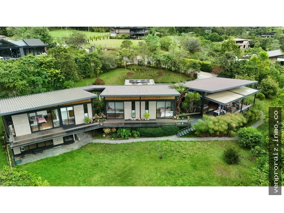 CASA CAMPESTRE ubicada en el Retiro, Antioquia. Diseñada en dos niveles en la que resaltamos su cabados modernos y el emplazamiento con el terreno y entorno que la rodea. Al interior nos ofrece espacios amplios y luminosos con corredores en vidrio, la madera y el color de los acabados nos ofrecen una sensacion de calidez. Area social y privada totalmente separadas e ingragradas por corredores internos y externos con jardin.